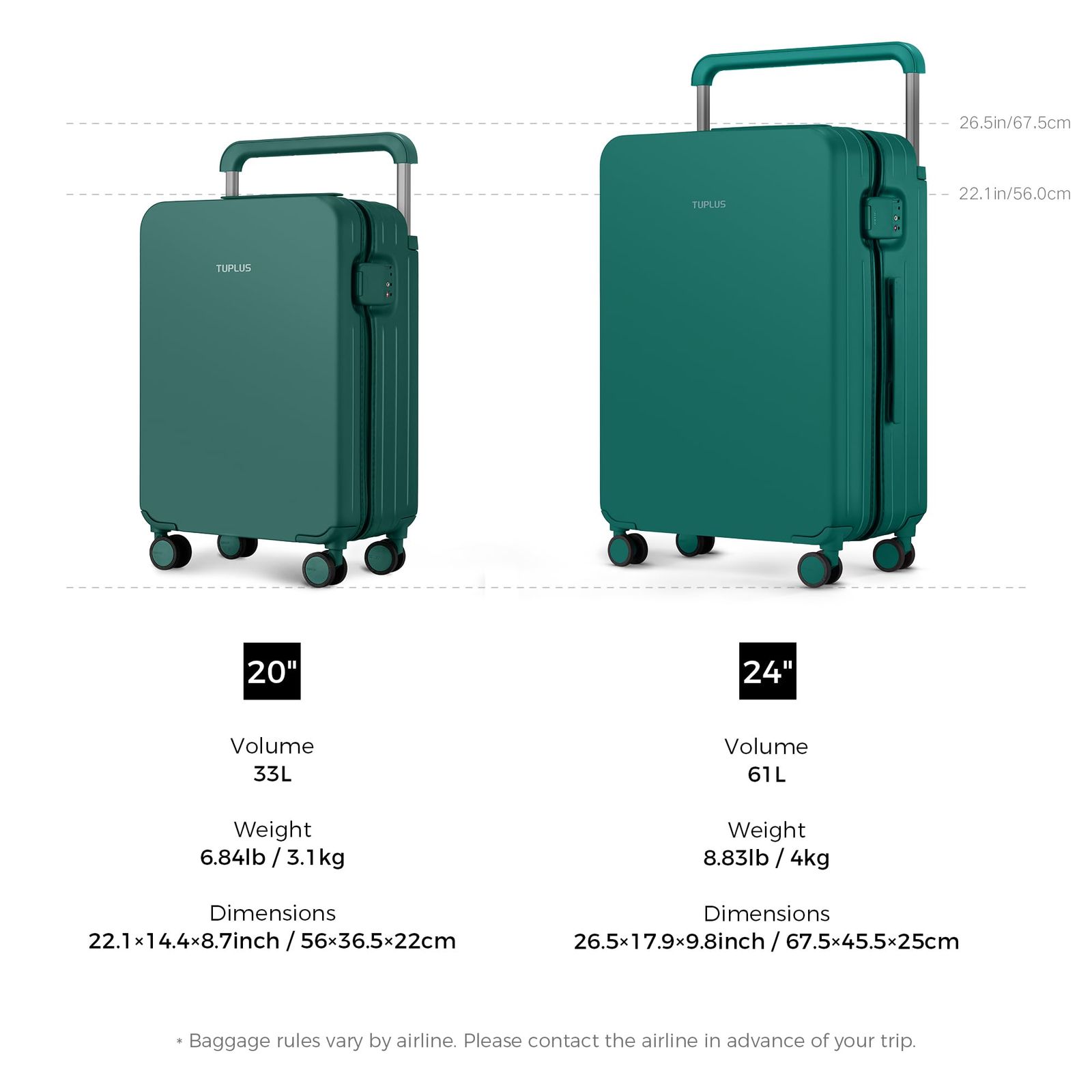 x 56 インプレッションシリーズ 36 5 TSAローク搭載 出張 ビジネス 旅行 8輪 22 静音 キャリーバッグ cm 耐衝撃 機内持込 キャリーケース 38 L 大型 超軽量 グリーン スーツケース TUPLUS