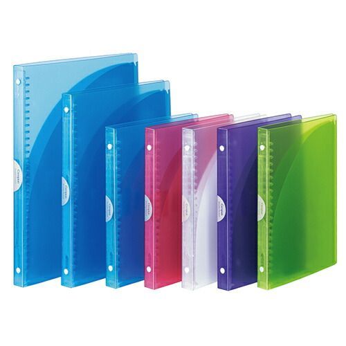 詳細情報スリムで軽く、一時保管に便利なポケット付きのカラフルバインダー。
