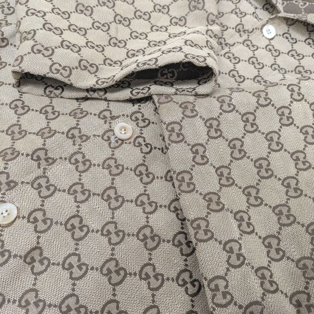 Dz 805902 グッチ 半袖シャツ GGリネン ブレンド キャンバス シャツ GGスプリーム 742707 ZAM 7 G 2580 ブラウン メンズ GUCCI
