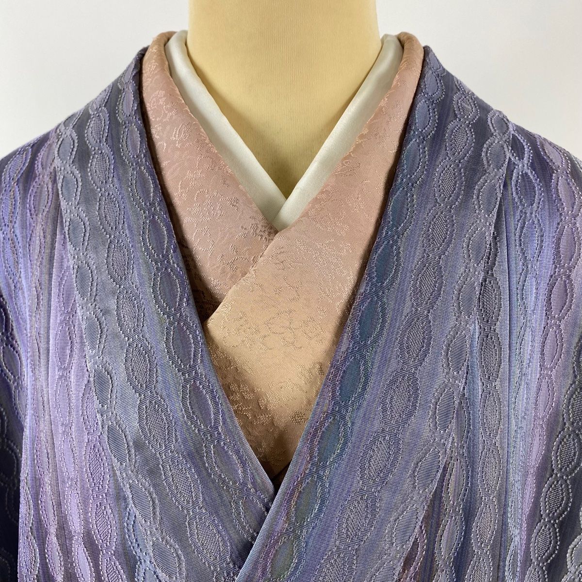 道中着 身丈102 cm 裄丈67 M 和装コート 着物衿 落款 地紋 縞 ぼかし 灰紫 正絹 秀品