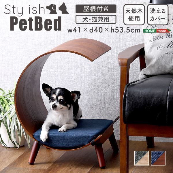脚付きペットベッド 屋根付きタイプ 天然木製 ナチュラル 組立品
