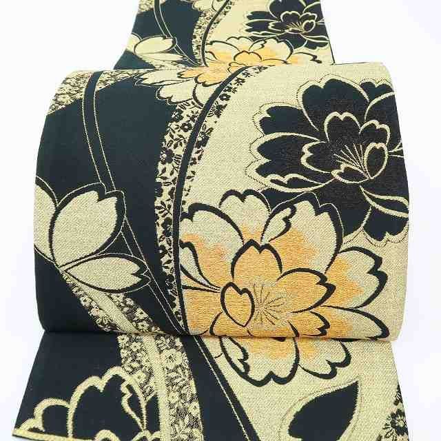美品 正絹 着物 振袖用“甘×辛ミックスを花開く桜吹雪と八重桜”袋帯 A+43