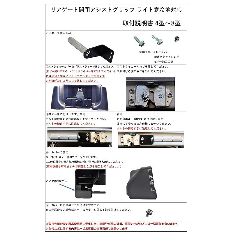 ※取付作業の際や製品使用時に発生した、車両や部品の破損、事故やけがなどには一切責任を負いません