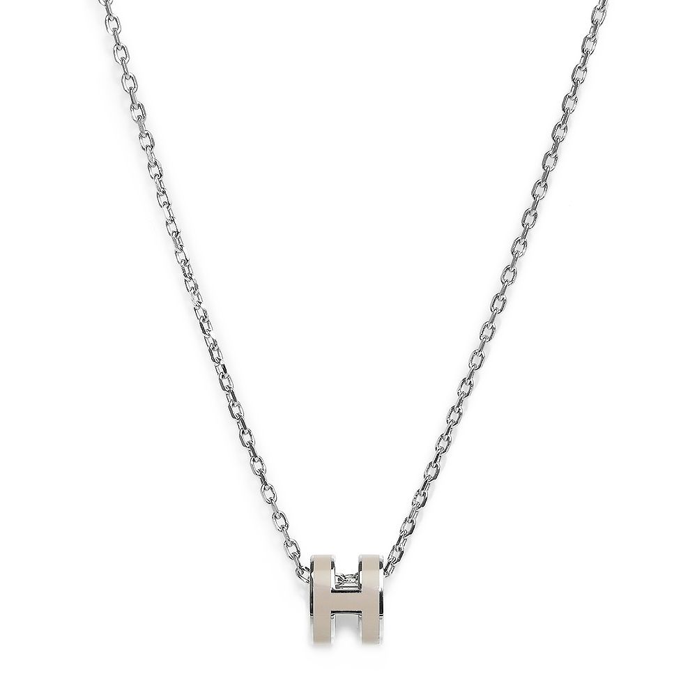 エルメス ポップアッシュ ミニ ポップ H ペンダント ネックレス マロングラッセ ベージュ シルバー金具 HERMES