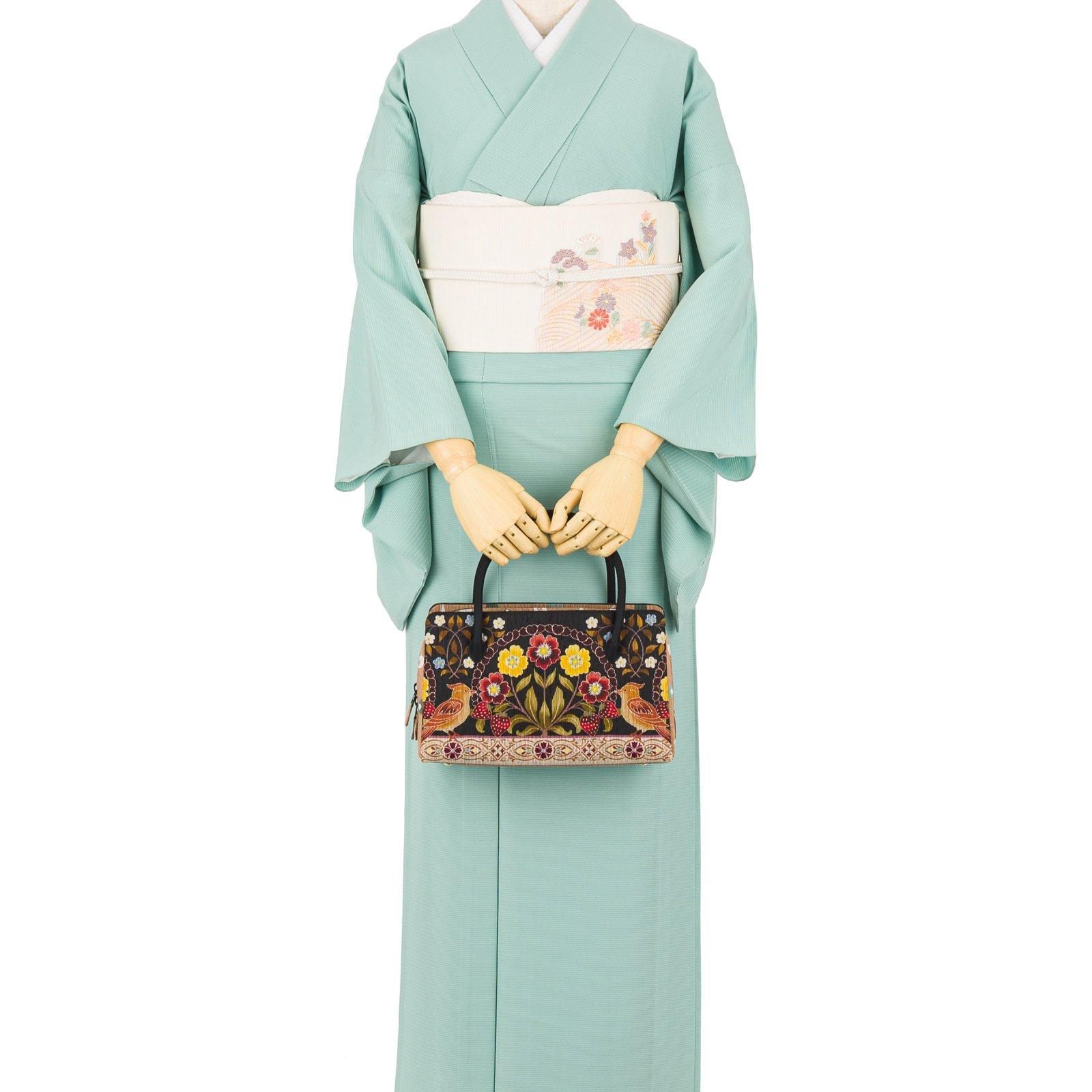 召しませ花 利休バッグ 小鳥といちご