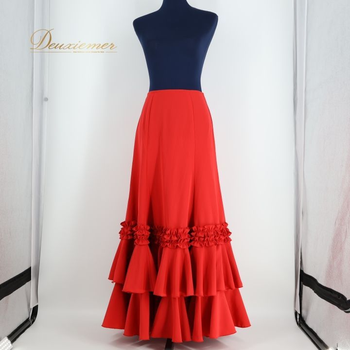 #フラメンコ #フラメンコ衣装 #ファルダ #スカート #ダンス衣装 #レッスン用 #ダンスファッション #赤いスカート #華やかさ #段々ボランテ #女性用トルソー #ダンス #フラメンコダンス #ストリートファッション #コスチューム #ボランテ #着回し #エレガント #無地スカート #ENUTSU