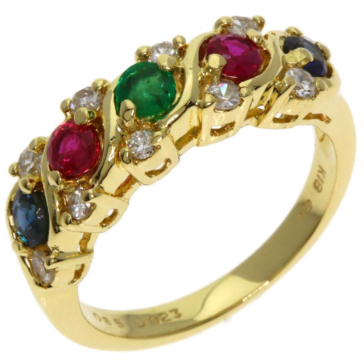 ミキモト ルビー サファイア エメラルド ダイヤモンド リング 指輪 K 18 YG レディース