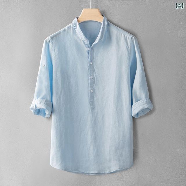 XL メンズ ファッション 服 男性用 オシャレ シンプル 大人 かっこいい 大きいサイズ ストリート 紳士服 夏 スモール リネン 半袖 シャツ フル 通気性 綿 トップス