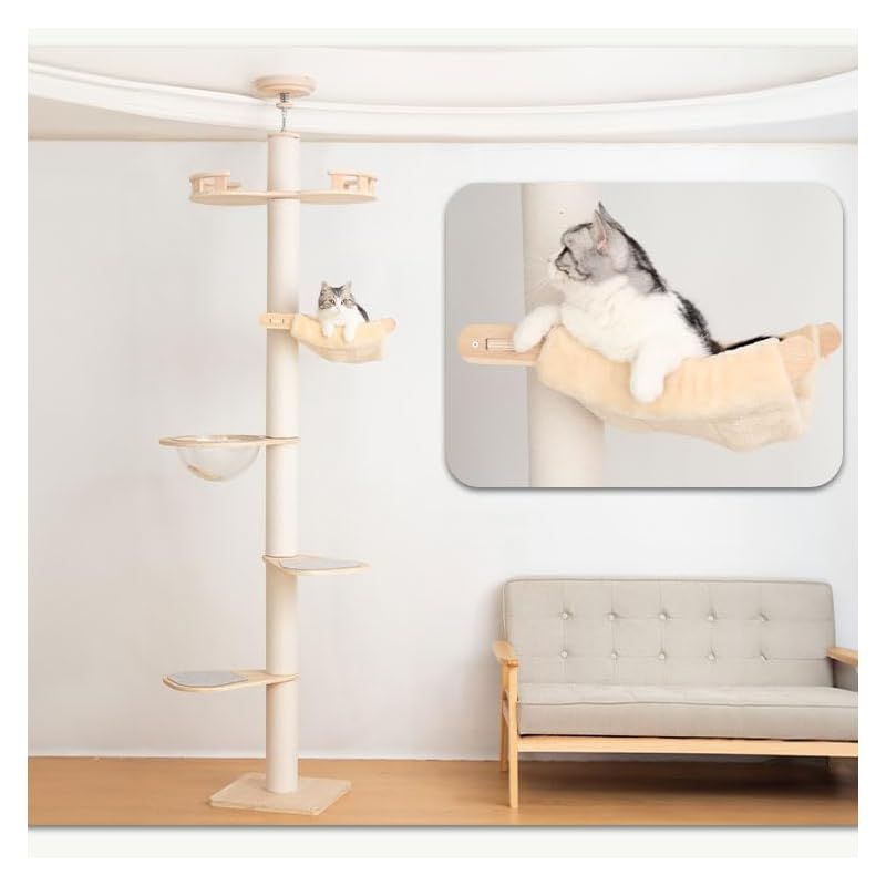 キャットタワー 突っ張り 木製 大型猫 コットン紐 スリム 木登り 多頭飼い キャットツリー シニア 据え置き 太い支柱 猫タワー 中型 猫キャットタワー おしゃれ コンパクト 省スベース 宇宙船 隠れ家 爪とぎ 安定 高さ203 1