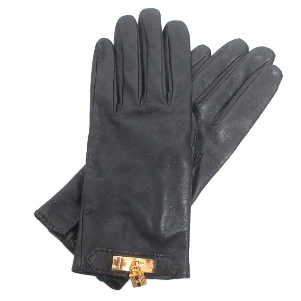 エルメス HERMES グローブ 手袋 カデナチャーム 南京錠 レザー 黒 ブラック 7.5 AA
