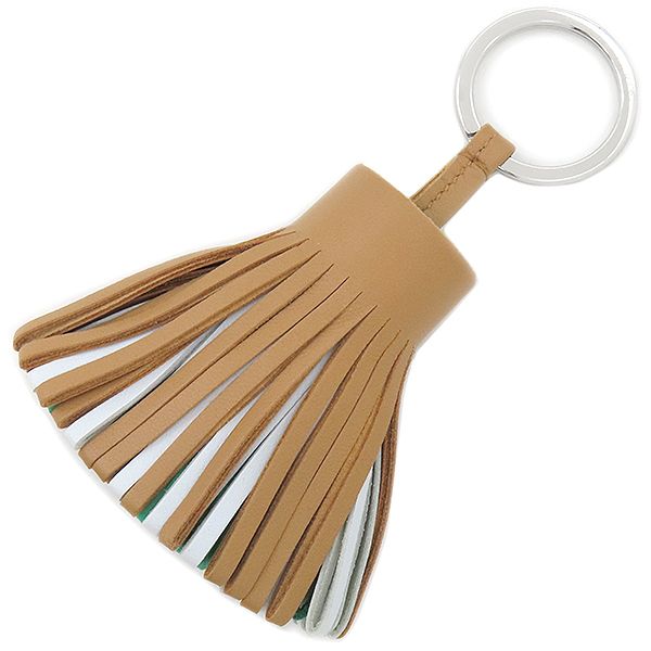 エルメス HERMES キーリング カルメン トリコロール ラムスキン チャイ×ブルーブリュム×ミント シルバー金具 茶 水色 緑 フリンジ U刻印 箱