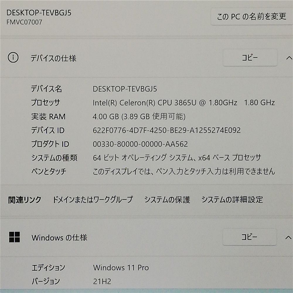 超 Wi-Fi有 富士通 ノートパソコン FMV MU 937 セレロン Celeron 高速SSD 無線LAN Bluetooth カメラ Windows 11済 Office 即使用可