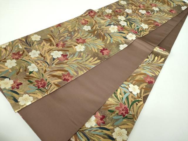 平和屋着物 六通柄袋帯 唐織 草花文 金糸 引箔 正絹 ps