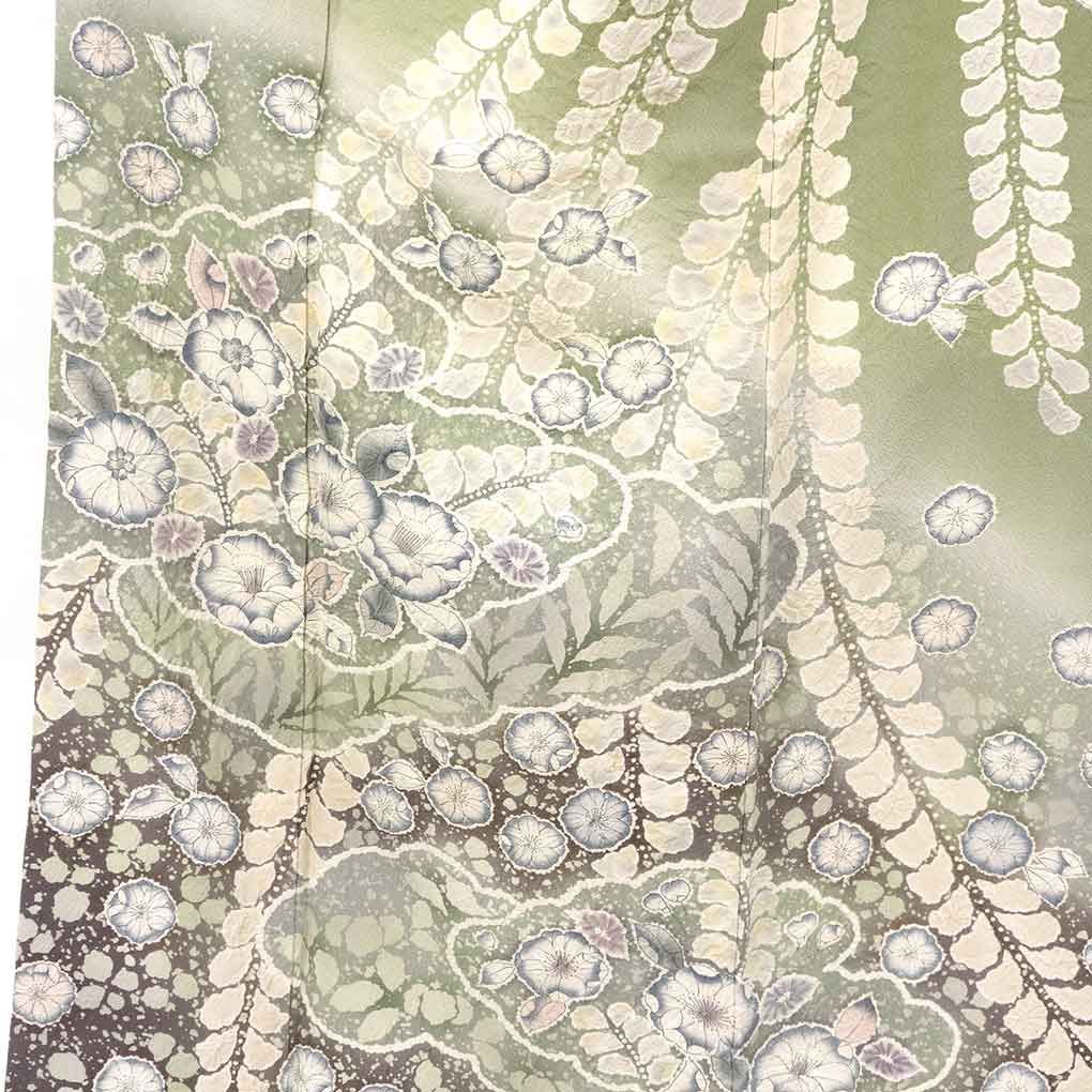 訪問着 身丈166 cm 裄69 前幅25 後幅30 袖丈49 袖幅34 レディース 袷 辻ヶ花 裄長 裄L-LLサイズ 秋冬春用 正絹 シルク グリーン トールサイズ 作家もの リメイク リユース リサイクル 呉服のきくや