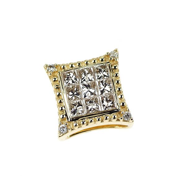 9ピースのプリンセスカットダイヤモンドをミステリーセッティングで飾った、エレガントなイエローゴールドのペンダントトップです。