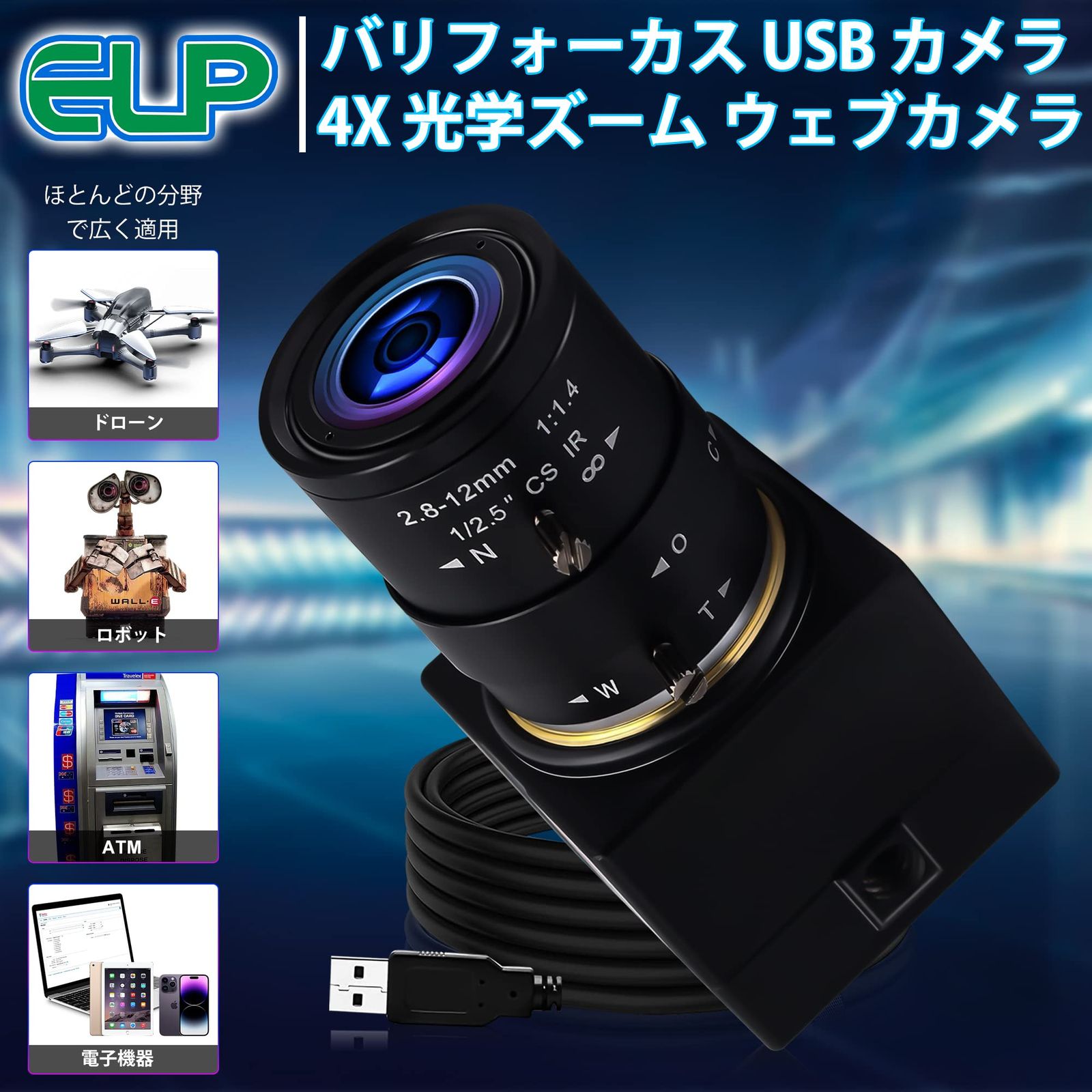 ELP 2.8-12mm可変焦点レンズ ウェブカメラ 100fps 光学4倍ズーム Webカメラ 200万画素 高速Webかめら 4倍ズーム Web会議用ガンカメラ 1/2.7 CMOS OV2710 1080p 30fps ズームカメラ Windows/Linux/Android/Raspberry pi対…