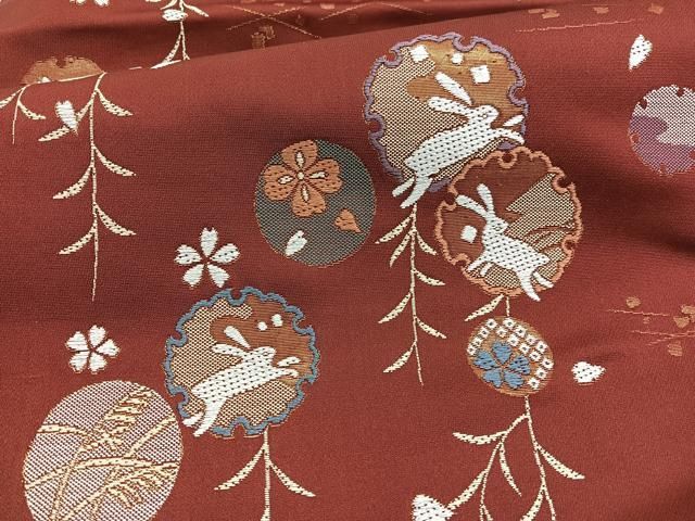 平和屋着物 九寸名古屋帯 唐織 雪輪兎花文 金糸 正絹 hv