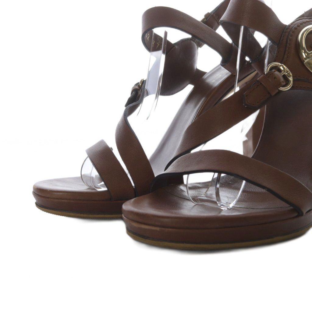 【商品名】グッチ GUCCI サンダル インターロッキング ハイヒール ストラップ レザー 37.5 ブラウン 283562 /YO7