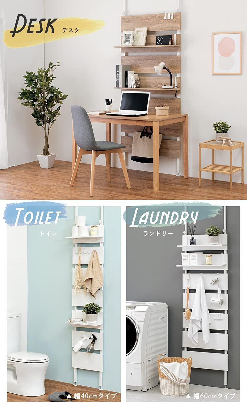 萩原(Hagihara) 突っ張り ラック つっぱり 棚 壁面収納 ウォールラック 【DIY・穴あけ・工事が不要】簡単取付 段差対応 木目調 幅60 スリム ナチュラル KTR-3147NW