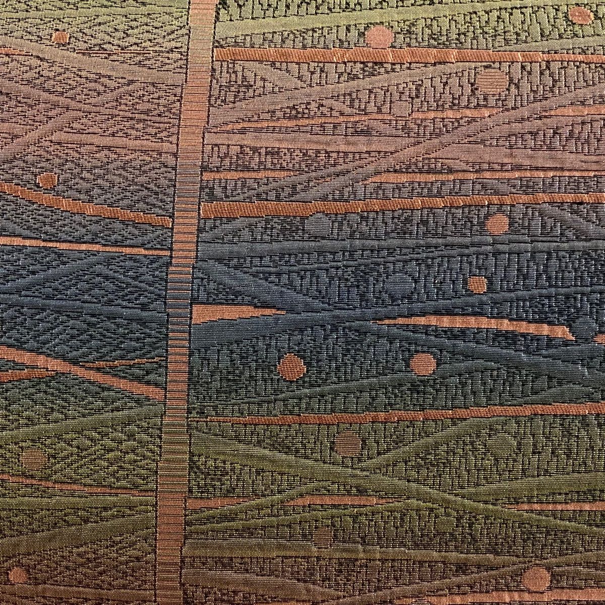 袋帯 秀品 幾何学模様 霰 ぼかし 赤茶 六通 正絹