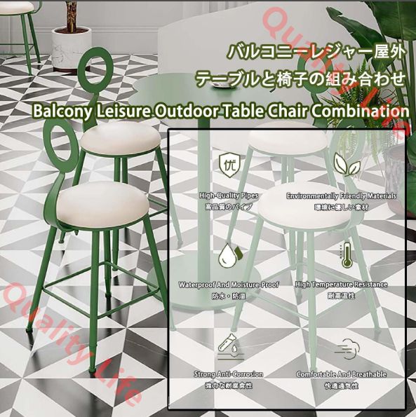 ? 【適切なシーン】:この3点のテーブルと椅子のセット(テーブル1台と椅子2脚)は、バルコニー/テラス/庭、屋外カフェ/ミルクティーショップ、オンラインセレブのチェックインや写真スポットの小道具などに置くことができ、実用的で美しいです。