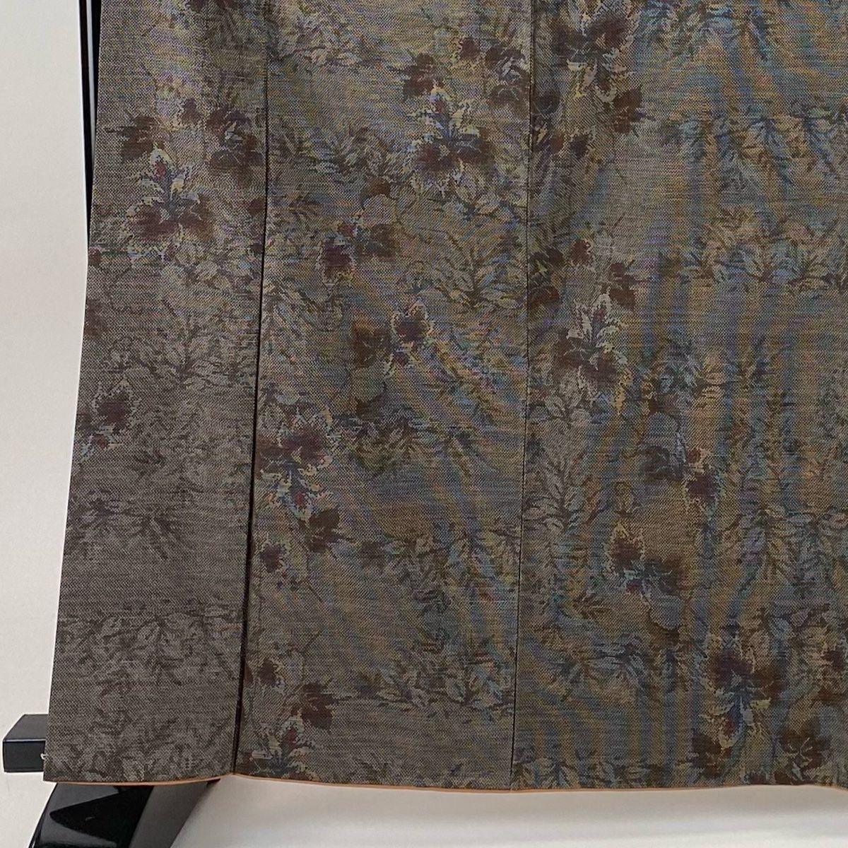紬 身丈164.5 cm 裄丈65 M 袷 草花 焦茶色 正絹 秀品