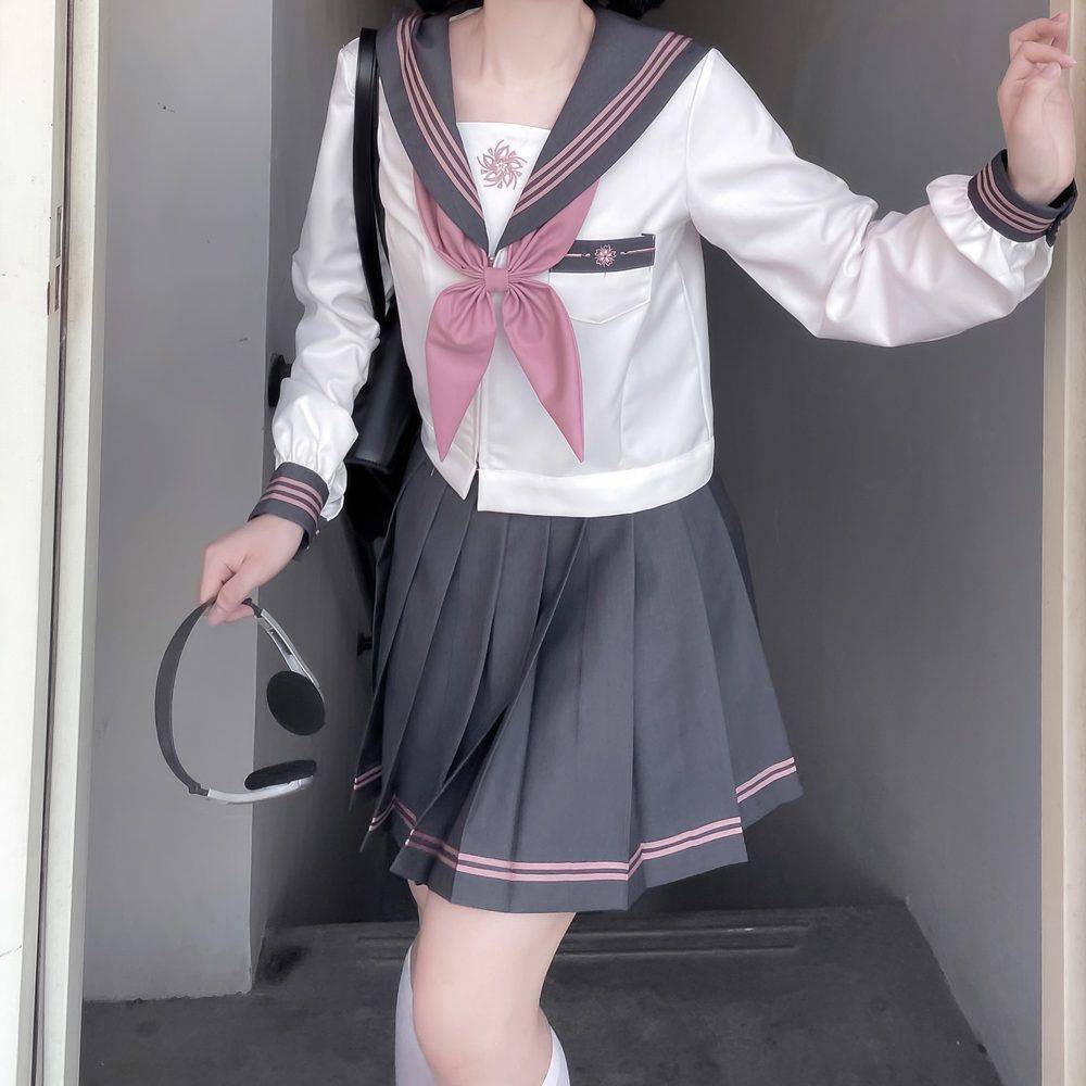 セーラー服 コスプレ 長袖 制服 セット 衣装 イベント コスプレ衣装 仮装 高校生 JK制服 JK 女子高生 シンプルスカート3点セット 学生 学生服 yunrui 23