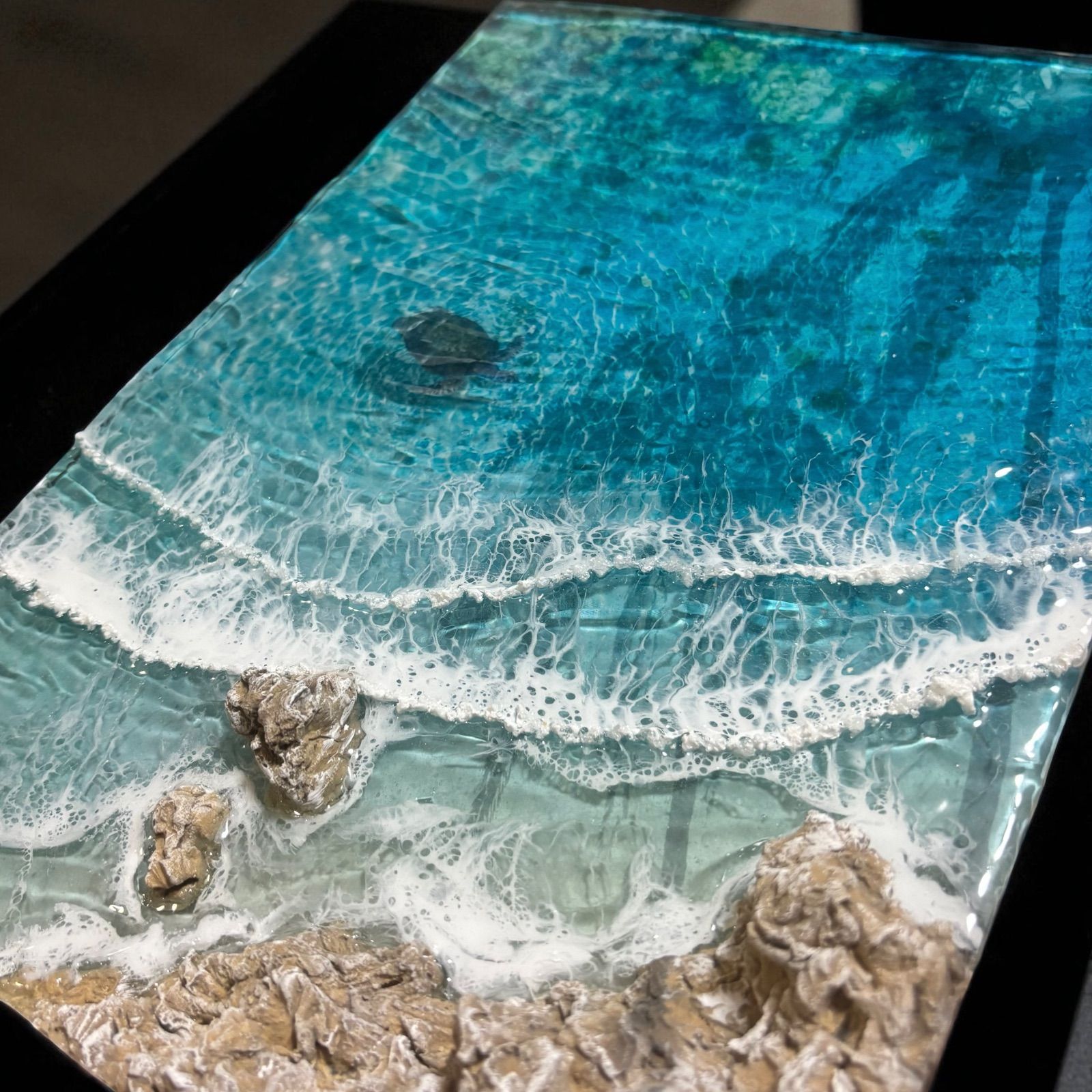 通常の平面レジンアートとは異なり立体的な加工を施したリアルな海になっています。