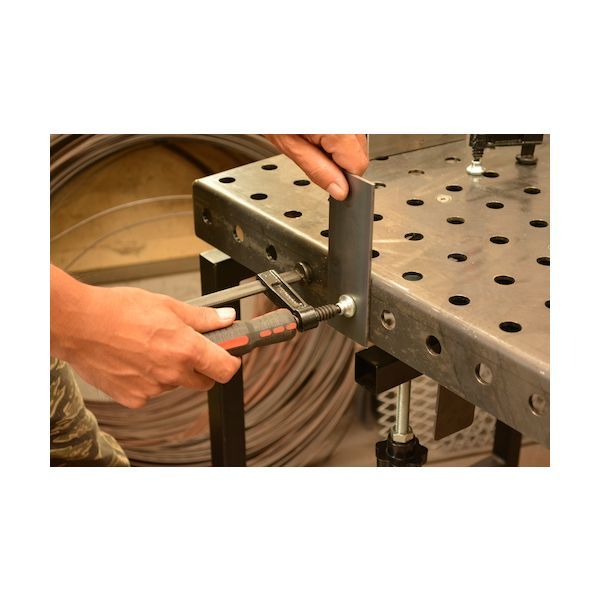 【特長】●天板が回転する溶接作業台です。●天板のΦ16の穴に専用のクランプをセットすることで、材料や治具の固定が可能です。●専用のクランプが2個付属しています。●トーチの収納に便利なトーチホルダーが付属しています。