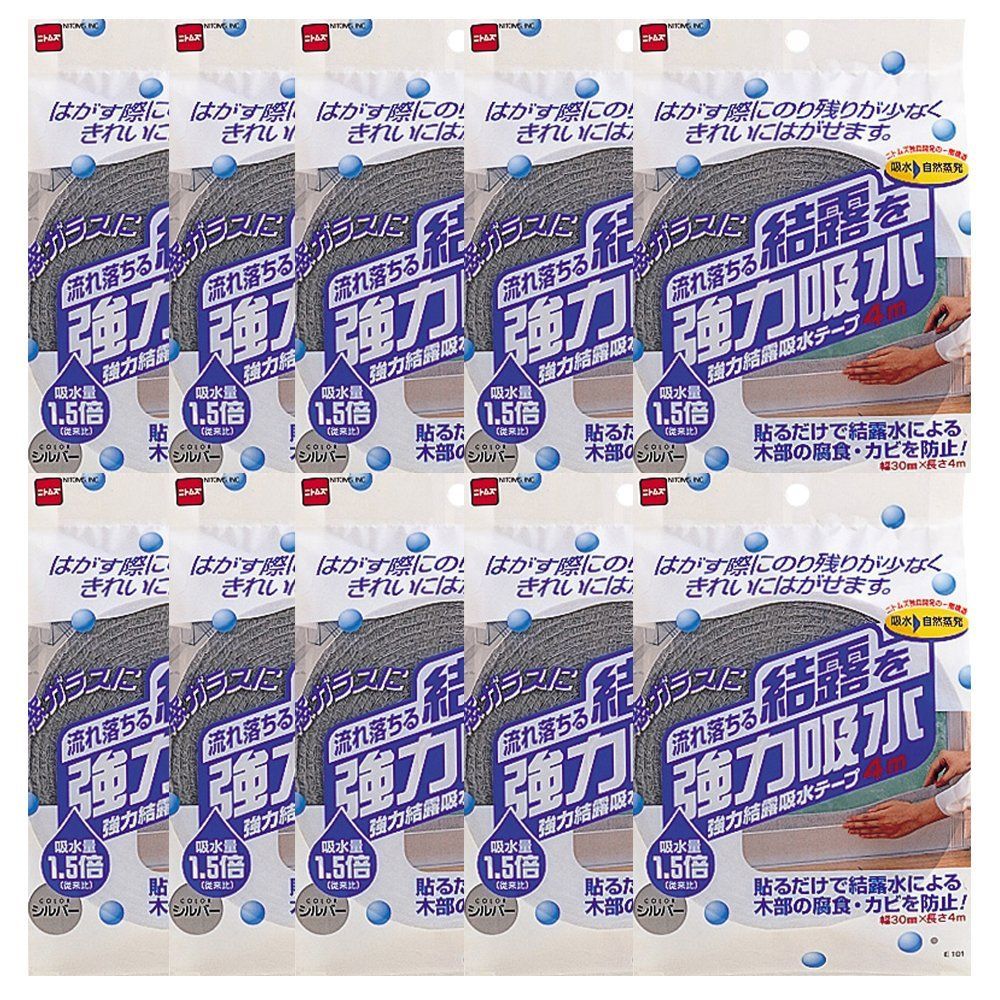 シルバー_b_10巻入り ニトムズ 強力結露吸水テープ30 シルバー 約4.5mm×30mm×4m E1010 10巻入り