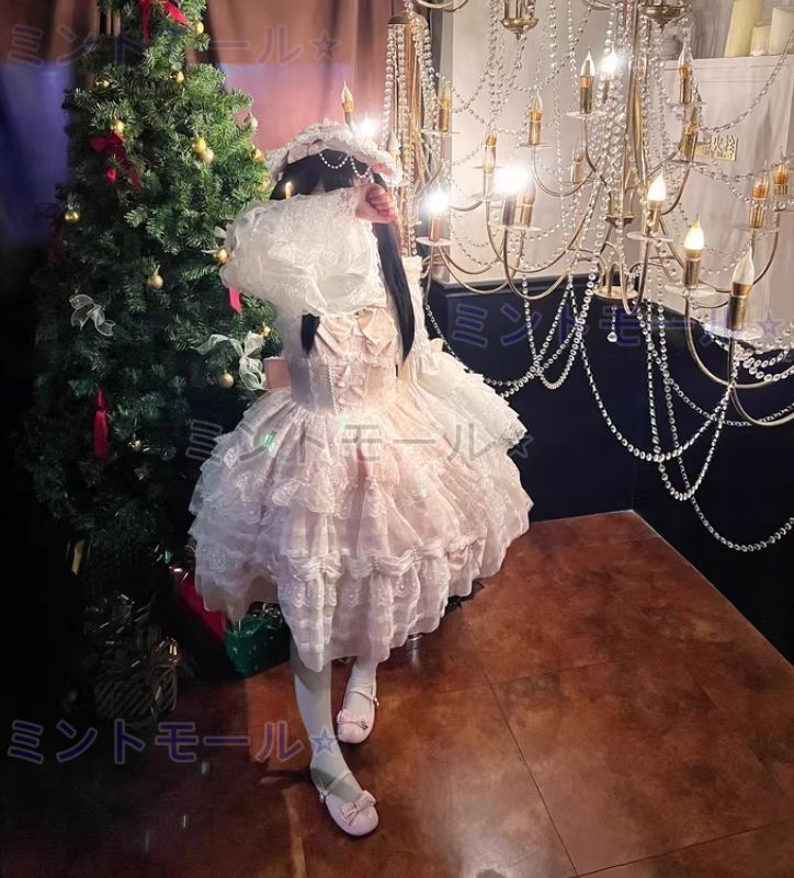 冬用 ロリータドレス JSK吊りスカート 多層レース&リボン装飾 ドール風 甘ロリ 豪華デザイン 撮影会 推し活 イベント用 プレゼ