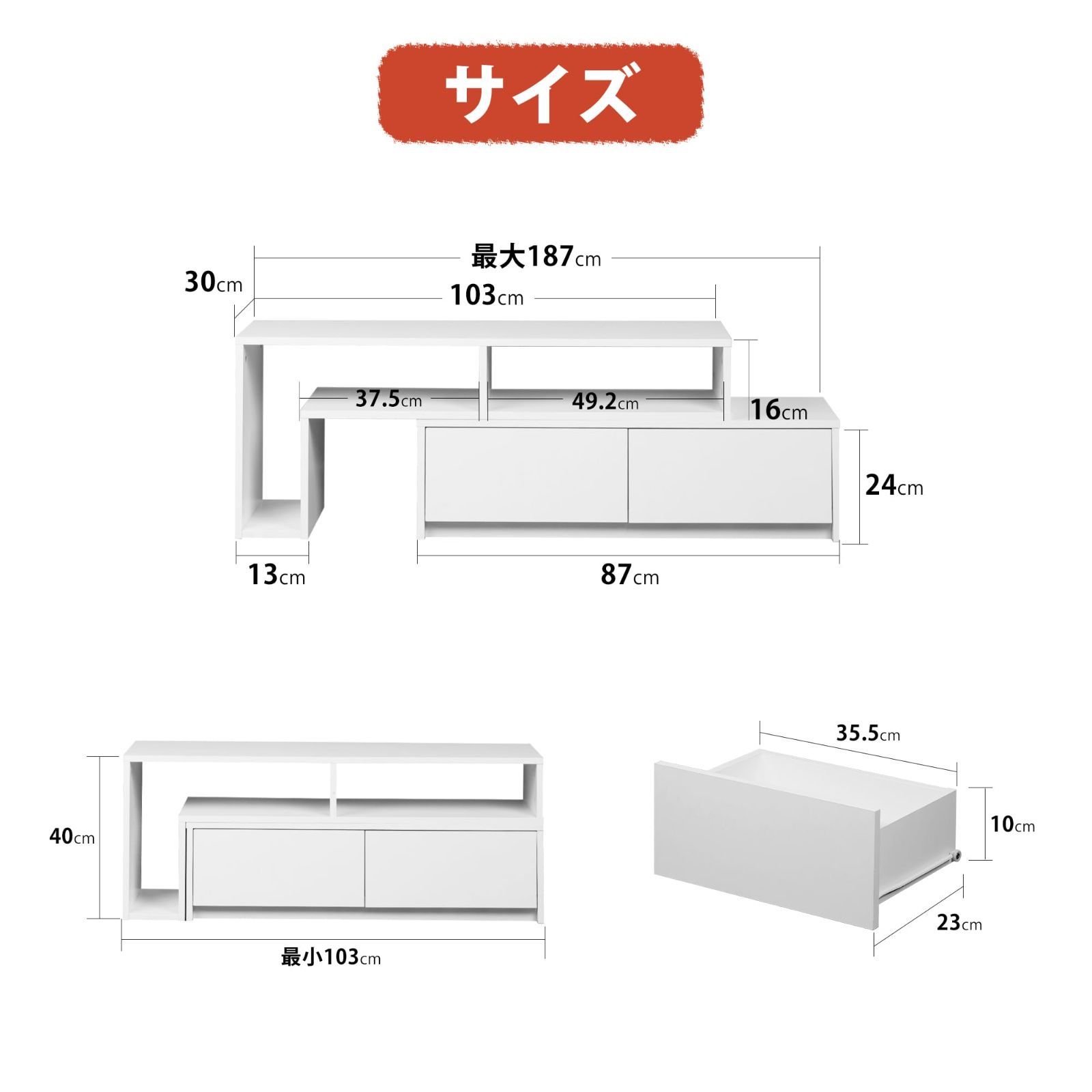 サイズ 幅103~187×奥行30×高さ40cm