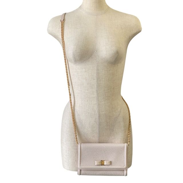 フェラガモ AU-22 C 940 ヴァラ ショルダーバッグ チェーンショルダー クラッチ 2 way リボン レザー オフホワイト Salvatore Ferragamo