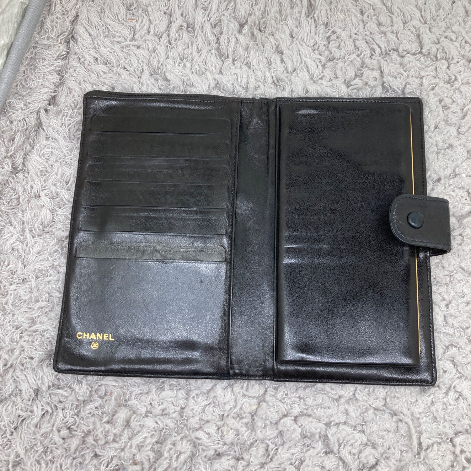 ✨ブランド名✨ CHANEL シャネル ココマーク ラムスキン がま口 二つ折り長財布 ウォレット 札入れ 小銭入れ カード入れ ブラック