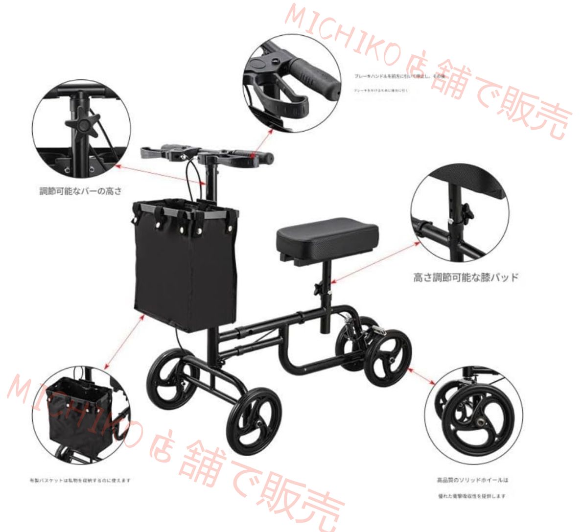 調整式歩行補助具足骨折ウォーカー 片足リハビリ松葉杖 障害者用歩行補助具用車輪付き歩行補助具 136 kg耐えられる 高齢者用膝車 四輪歩行器 折りたたみ式