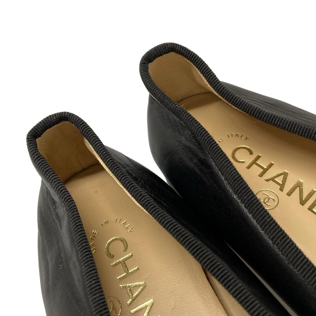CHANEL シャネル フラットシューズ 37 1 2 C レディース - G 02819 黒 リボン ココマーク レザー ラムスキン
