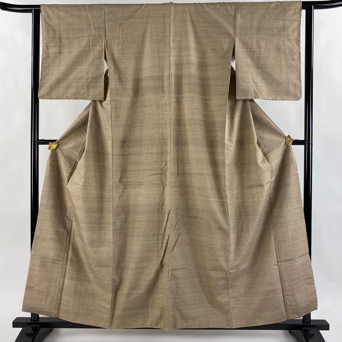 紬 身丈158 cm 裄丈61.5 S 袷 やまと 格子 薄茶色 正絹 秀品