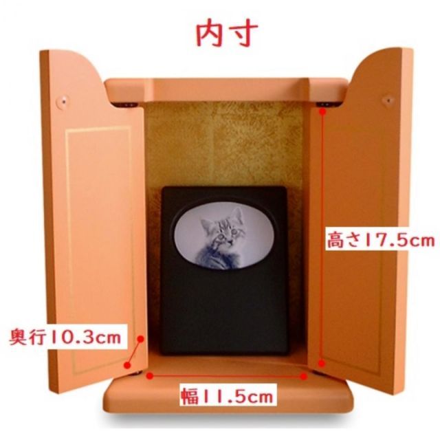 ・扉はアーチ状の観音扉です。中には大切だったペットの写真を入れることができる写真立てが付いています。
