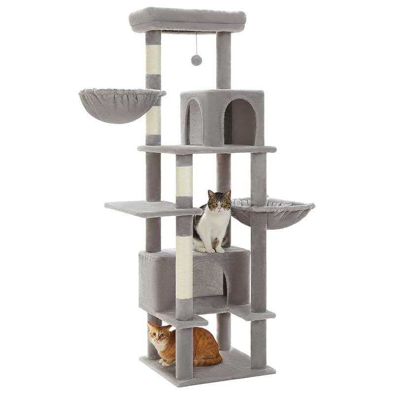 PAWZ Road キャットタワー 多頭飼い 大型猫用 スリム 猫タワー 大型 爪研ぎ 麻紐 ハンモック 据え置き 省スペース 人気 おしゃれ かわいい シンプル おもちゃ 運動不足 安定 頑丈 大型猫 - グレー 170cm