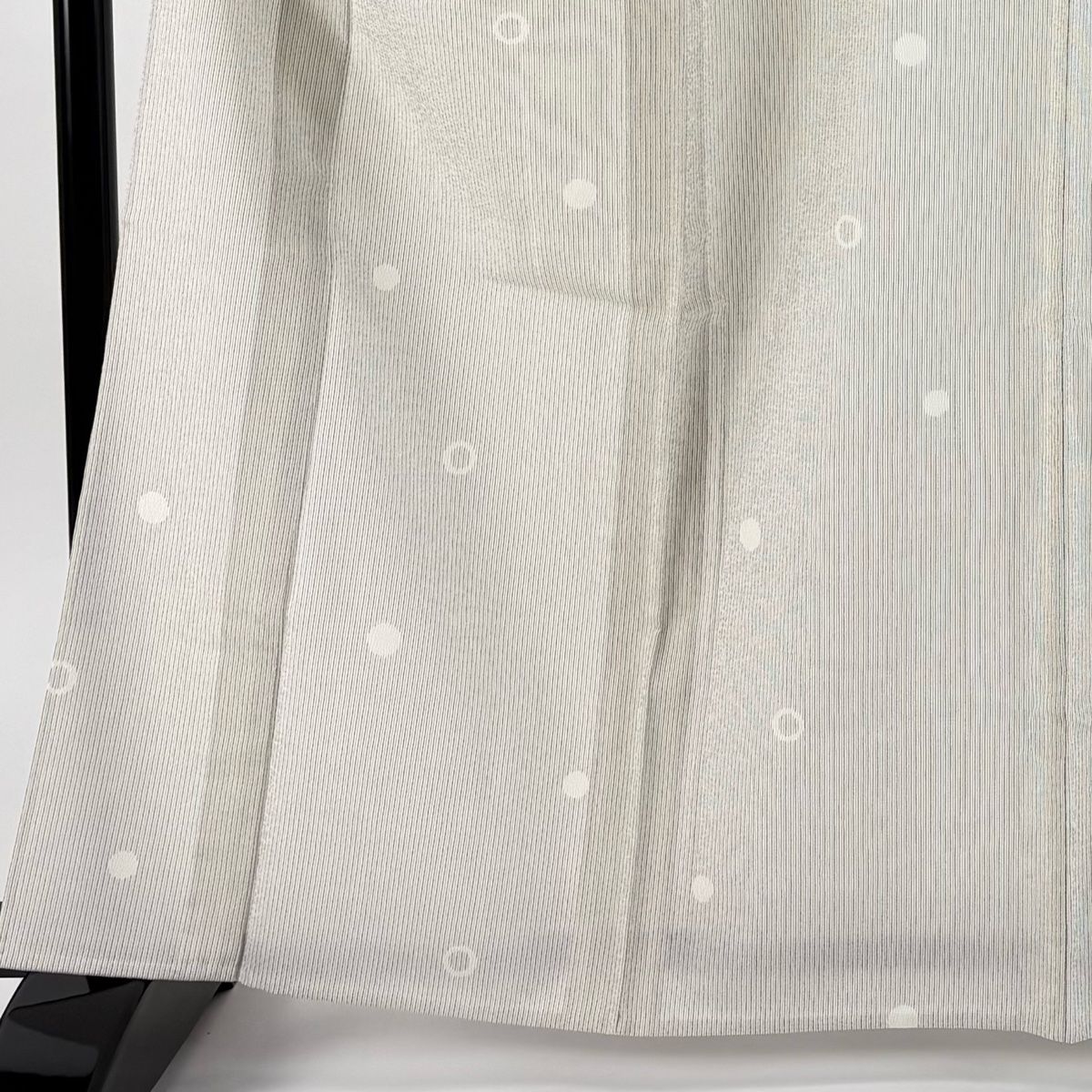 紬 身丈163 cm 裄丈65 M 単衣 縦縞 丸 灰白 正絹 秀品
