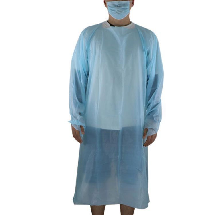 CPEガウン 食品工場 200点セット 指フック エンボス加工 ブルー 袖付き 親指フック式 プラスチックガウン 使い捨てエプロン 男女兼用 医療 介護用 使い捨てガウン 防護服 大量 rabubi 581271