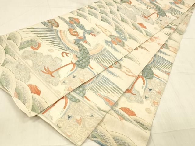 平和屋着物 夏物 アンティーク 大正ロマン 丸帯 流水孔雀花文 正絹 cm