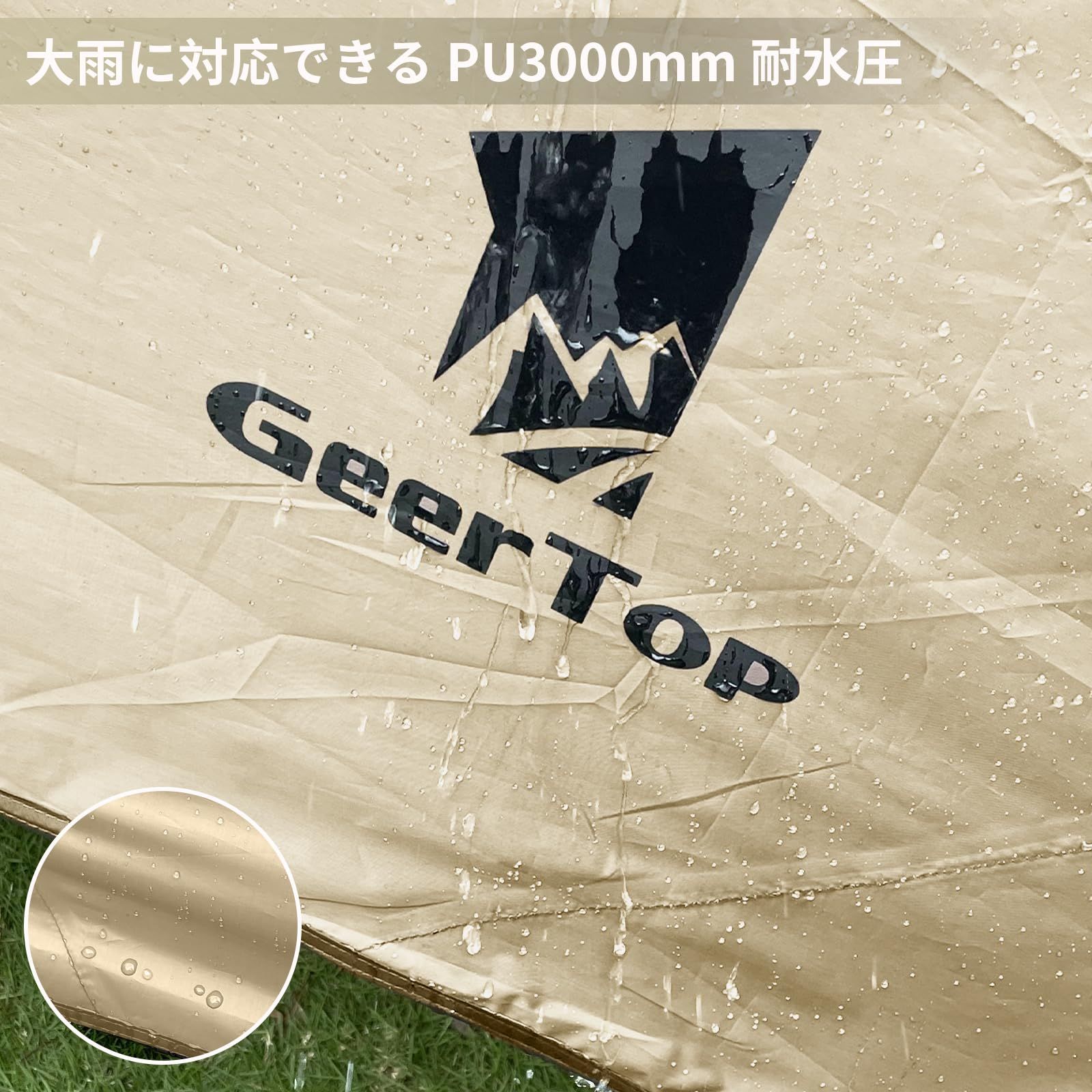 Geer Top 防水タープ キャンプ タープ 3 m 5 25 大型 UVカット UPF 50 耐水3000 mm 耐引裂 日よけ 紫外線カット 遮光 遮熱 カーサイドタープ アウトドア レジャー ピクニック 公園 観戦 車中泊 ビーチ カーキ