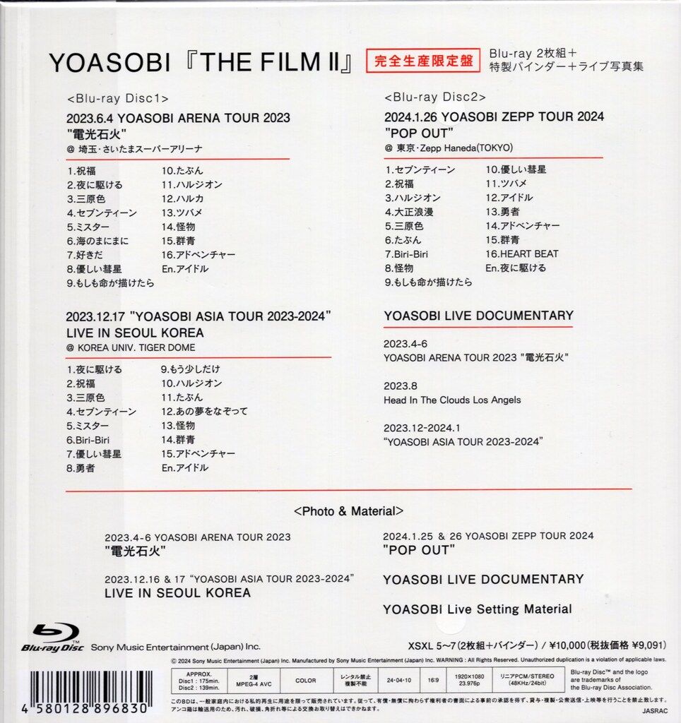 ソニー ミュージックソリューションズ ライブ イベントBlu ray YOASOBI THE FILM 2 完全生産 版