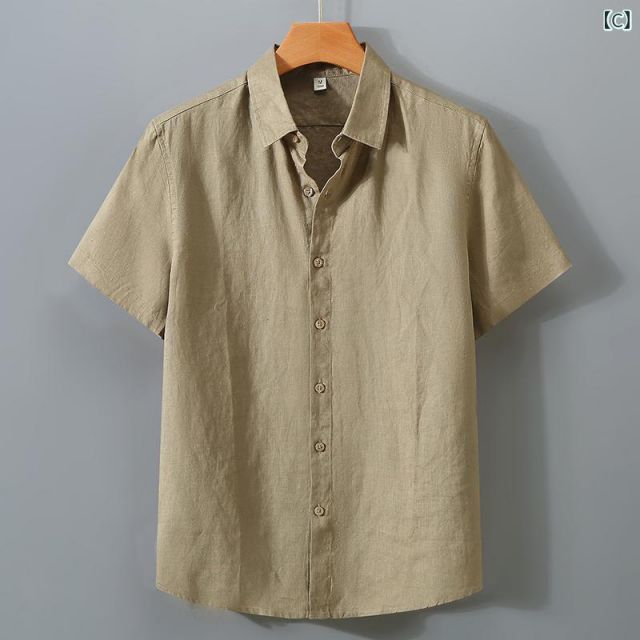 XL メンズ ファッション 服 男性用 オシャレ シンプル 大人 かっこいい 大きいサイズ ストリート 紳士服 夏 リネン 半袖 白 シャツ カジュアル 薄手 綿