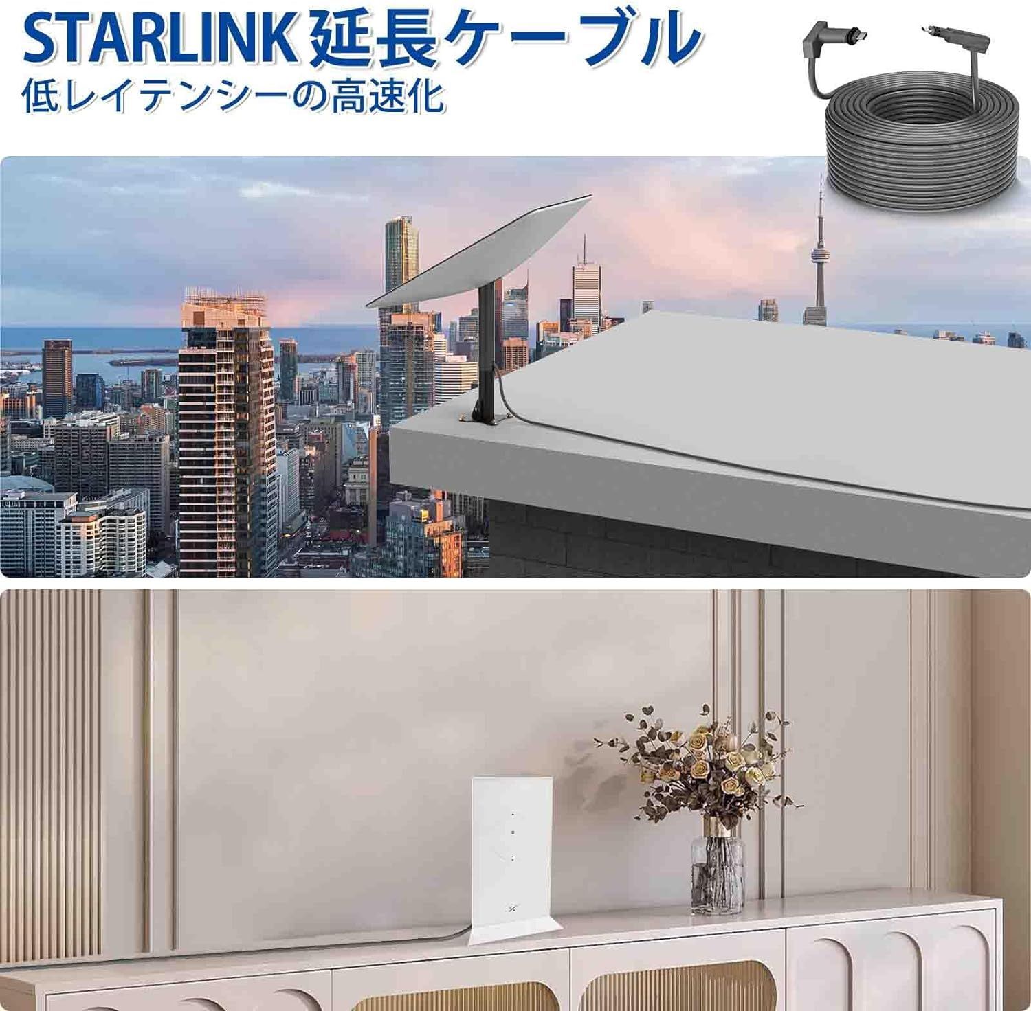 Starlinkスターリンク インターネットキット 衛星交換用ケーブル 46メートル Starlink 長方形 Satellite V 2用 ケーブル延長 防水