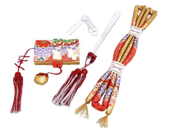 着物美人 み 七五三 女の子 箱セコ3点セット 七五三箱セコ 女の子箱セコ 女の子帯締め 箱迫 丸ぐけ 帯締め 末廣 びら簪 女児 子供 キッズ 2 3歳 5 6 7歳 女の子着物用 七五三着物用 金 赤 m 525315