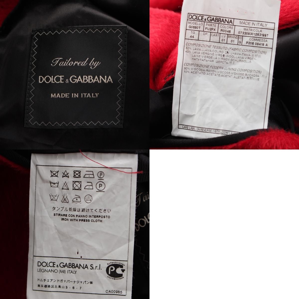 ドルチェアンドガッバーナ ラマウール ヴァージンウール シャギー コート レッド 44