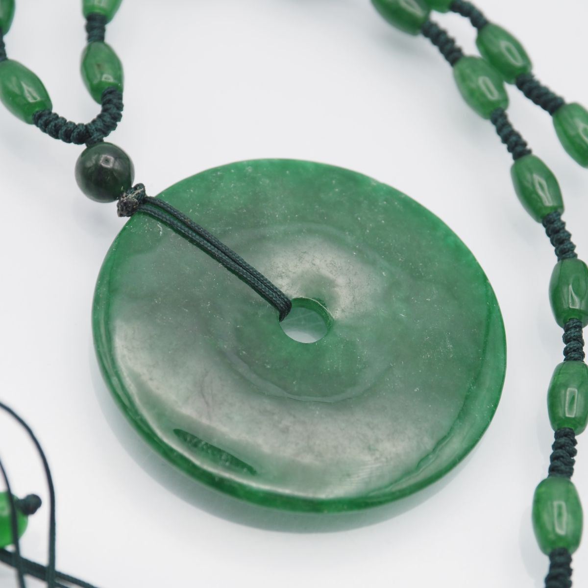 H 247 翡翠 ヒスイ ネックレス 大ぶり 彫刻 紐 デザイン アンティーク