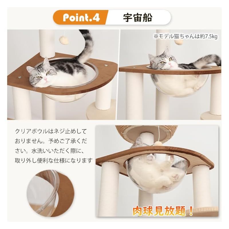 キャットタワー 据え置き おしゃれ 大型 高さ142cm 大型猫 シニア猫 木製ボードにベルベット張り 手編みカゴ ラタン風 壁際ぴったり コーナー コンパクト 成猫 省スペース 上下しやすい インテリア性 多頭飼い スリム 夏冬兼用 見晴台 猫タワー 宇宙船 クリアボウル 中型猫 爪研ぎ ハンモック 重厚感 コットン紐 隠れ家 安定 運動不足解消 猫ベッド ストレス発散